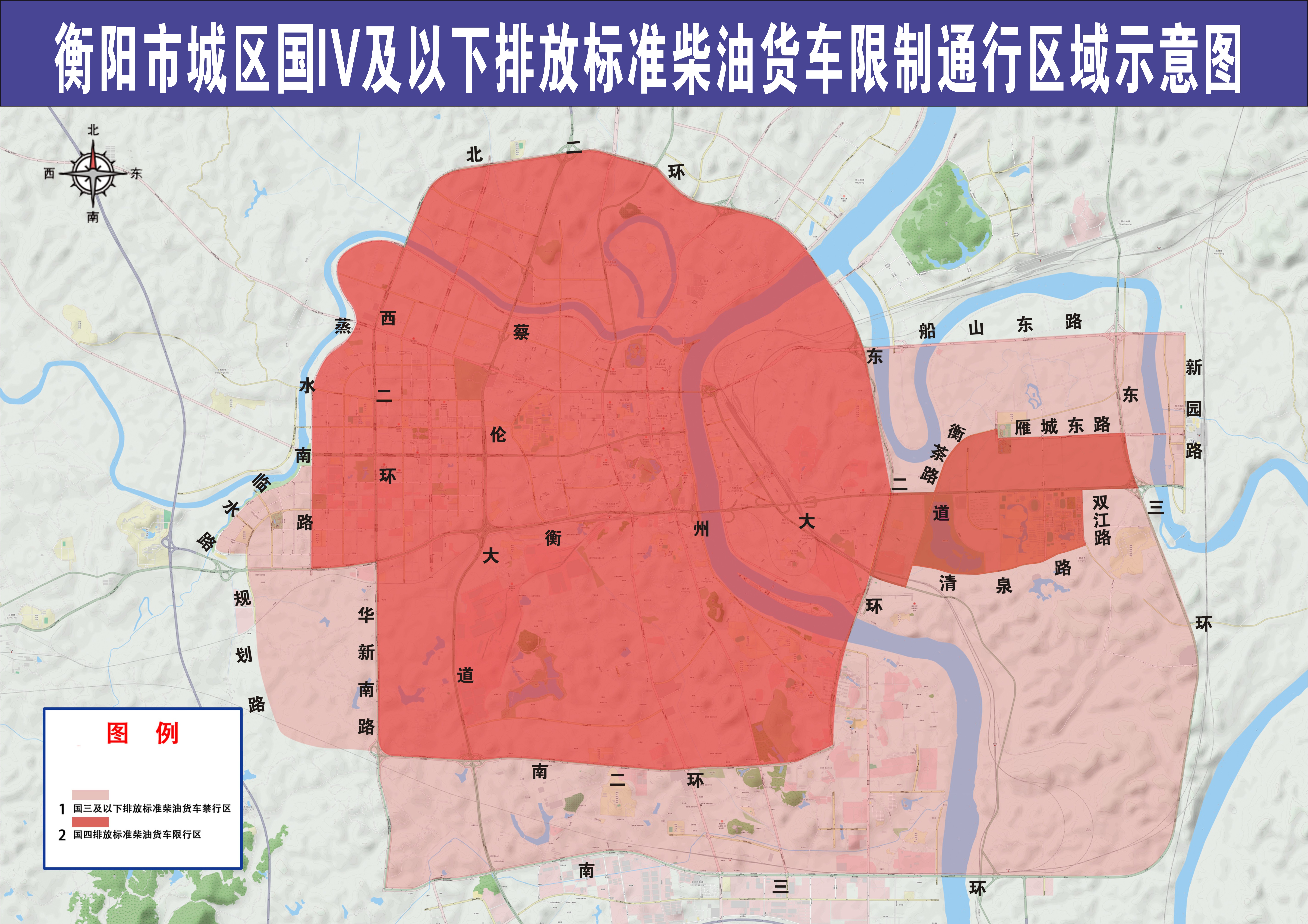 衡陽(yáng)市城區(qū)國(guó)IV以下排放標(biāo)準(zhǔn)柴油貨車(chē)限制通行區(qū)域示意圖
